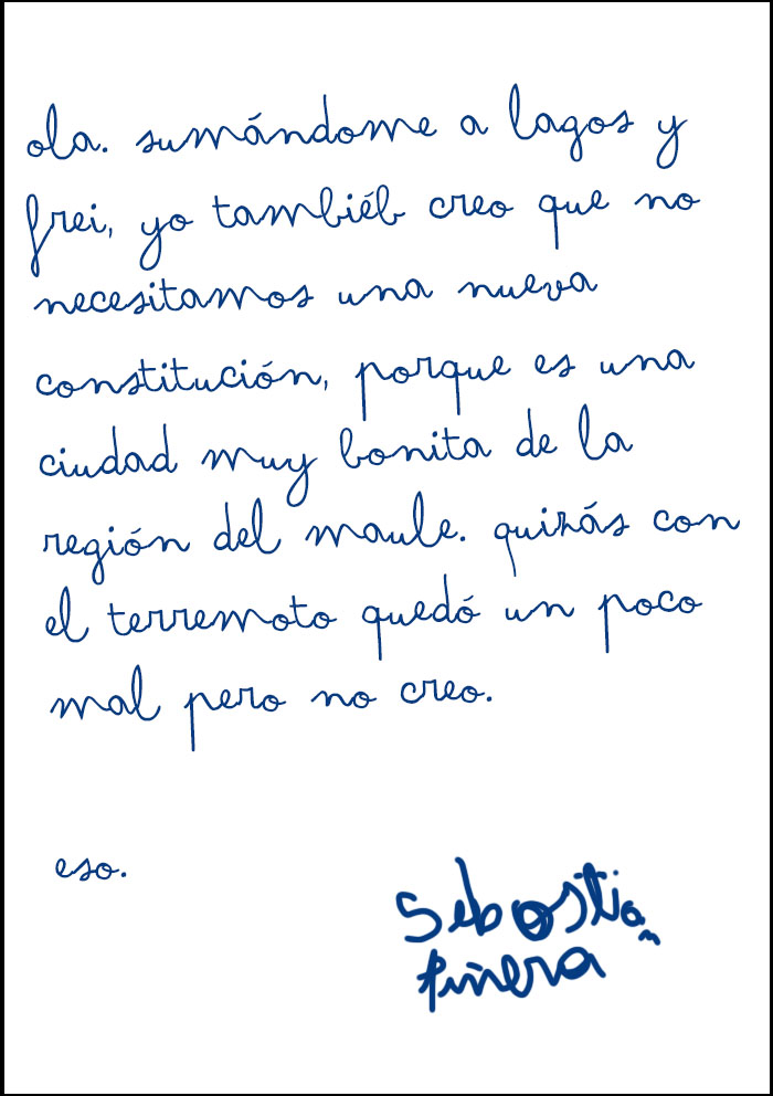 El exPresidente se suma a Ricardo Lagos y Eduardo Frei dando su opinión sobre la nueva carta magna en una carta enviada directamente a las oficinas de nuestro medio.