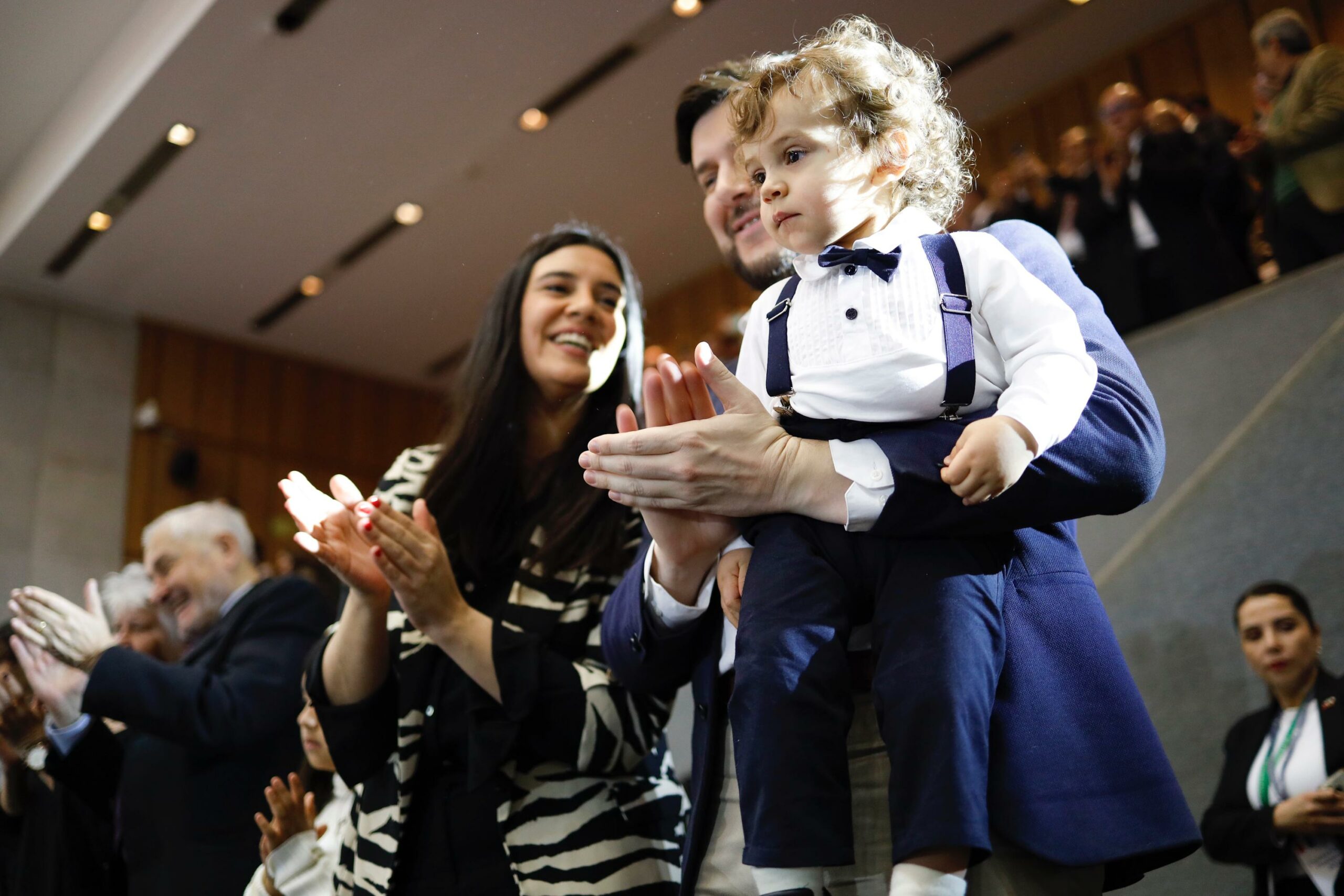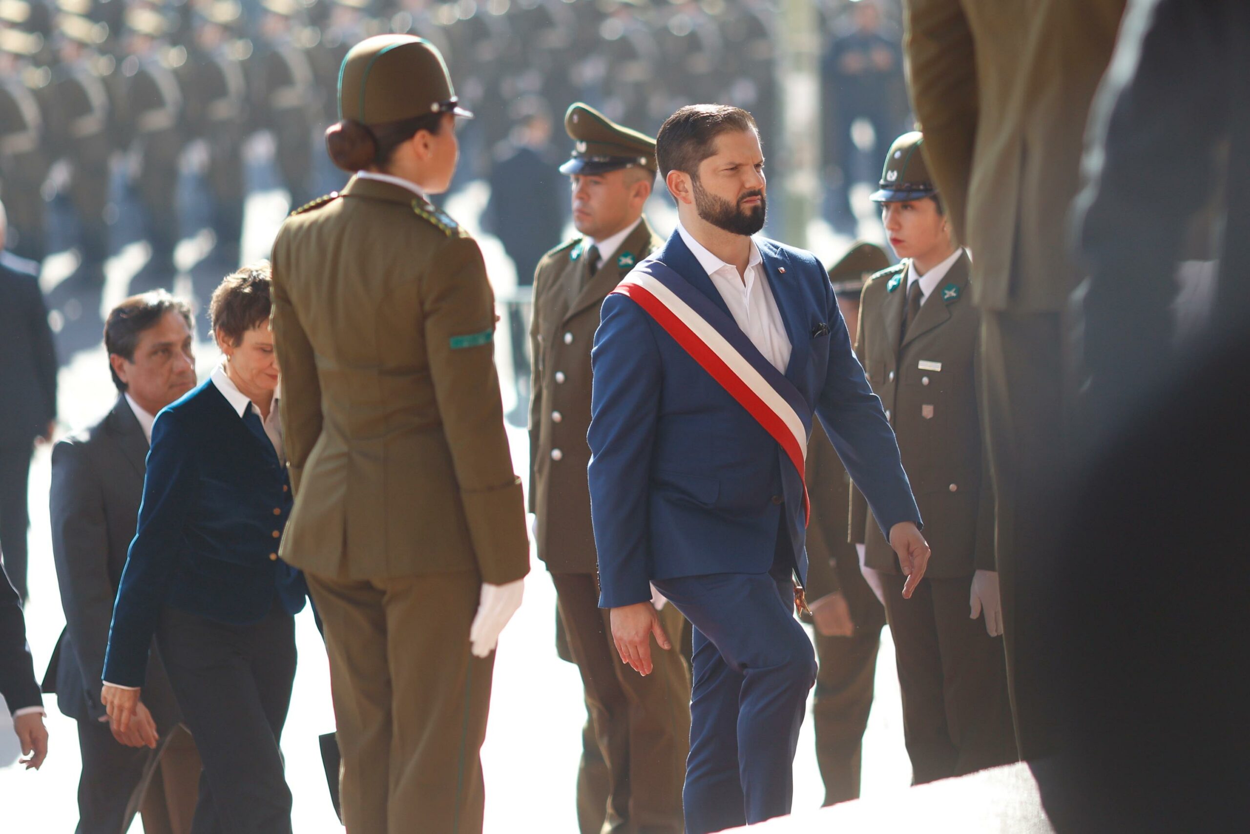 En las tribunas, y a la izquierda del jefe de Estado, se ubicó la familia Boric-Font. Su hermano menor, Tomás Boric, estuvo acompañado por una amiga. Por otro lado, Simón Boric asistió junto a su pareja Fiona Bonati y su hijo —sobrino del Mandatario— León. También acudió el padre del Presidente, Luis Boric.