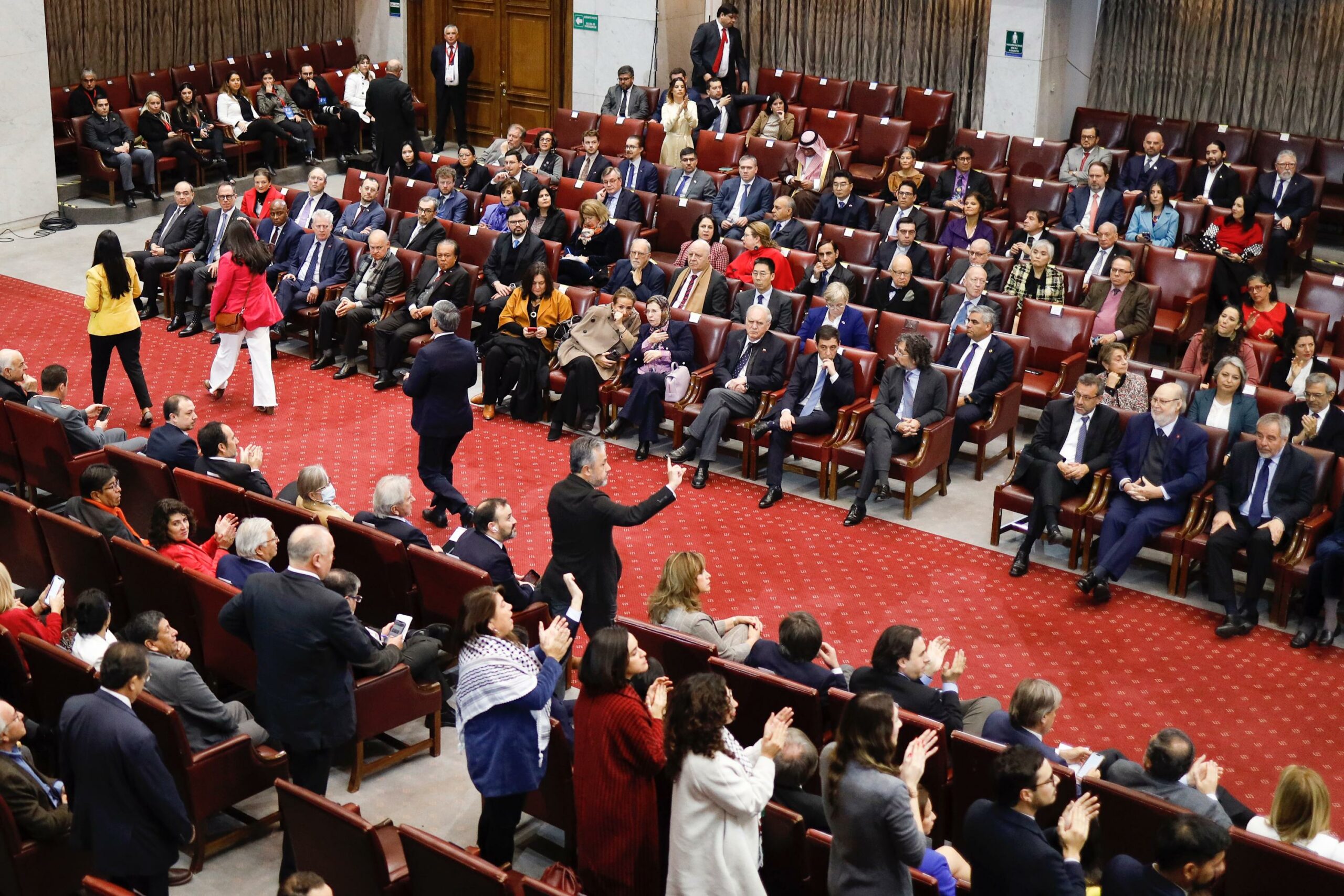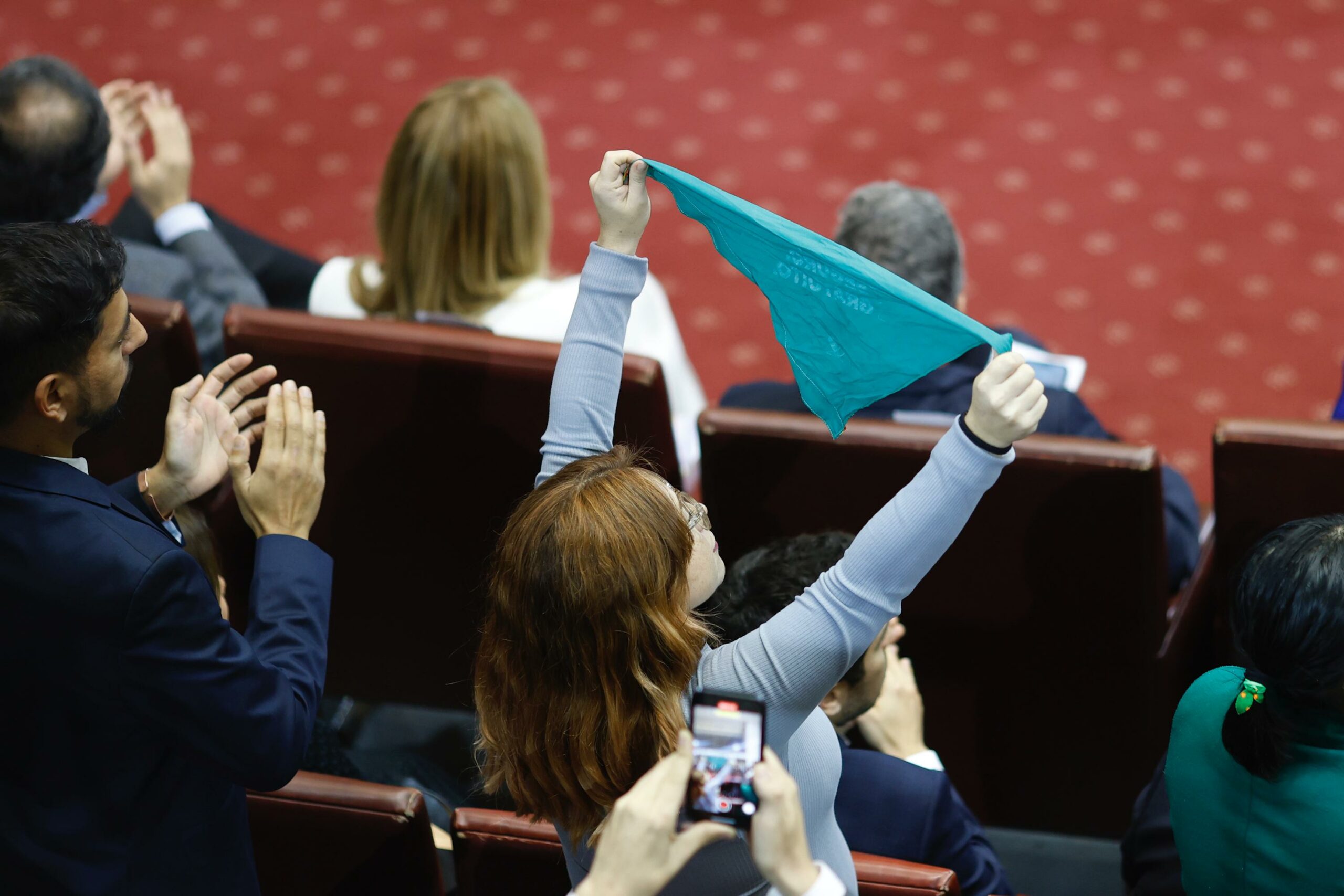 Dentro de la sala, el anuncio —junto con las gestiones para ser sede de los Juegos Olímpicos— fue de los más aplaudidos entre las filas oficialistas. La diputada María Francisca Bello (Convergencia Social) alzó la pañoleta verde del aborto.
