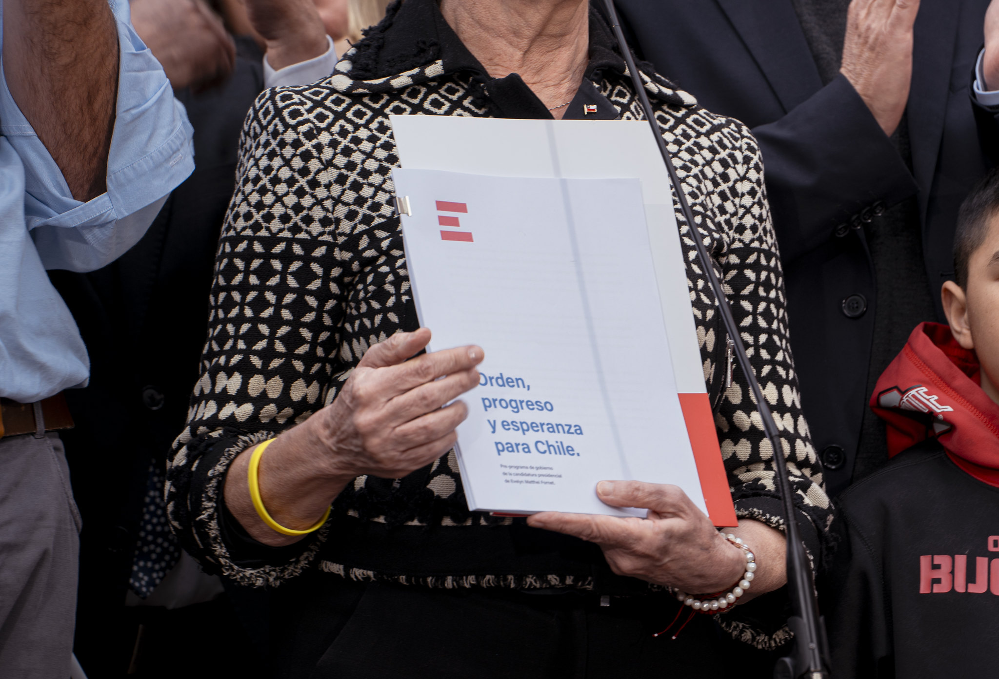 A la salida del lugar poco a poco fueron llegando adherentes hasta acumular a cerca de cien personas. Entre ellos figuraban diputados, senadores y miembros de las directivas de los partidos, además de integrantes del comando de la abanderada, como su jefe programático, Juan Luis Ossa, y su jefe de campaña, el exdiputado Diego Paulsen.
