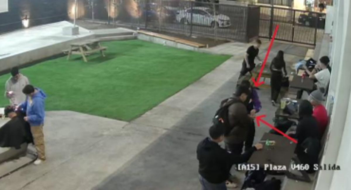 Según reporte, se identificó “el comportamiento de uno de los jóvenes el cual viste un polerón de color negro y mangas de color rojo y azul, el cual a las 18:08:49 extrae desde el interior de su mochila un objeto plano de color negro similar a una balanza“.