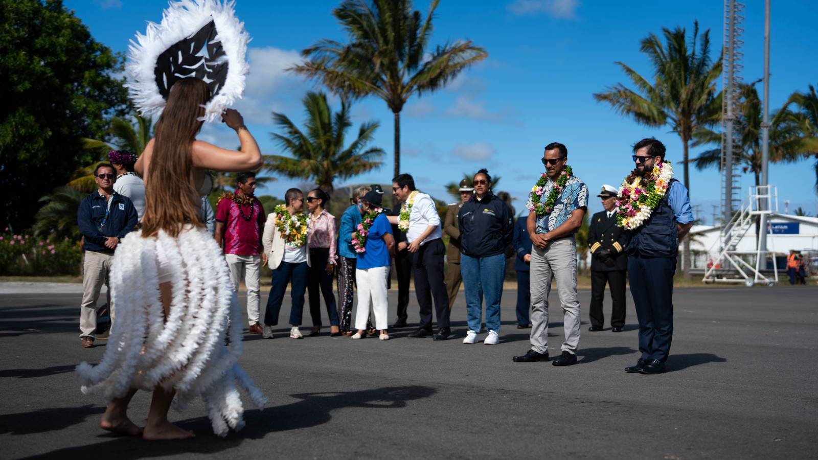 18 de Febrero de 2026Entre pifias, manifestantes y con “clases” de baile tradicional: Presidente Boric aterriza por primera vez en Rapa Nui