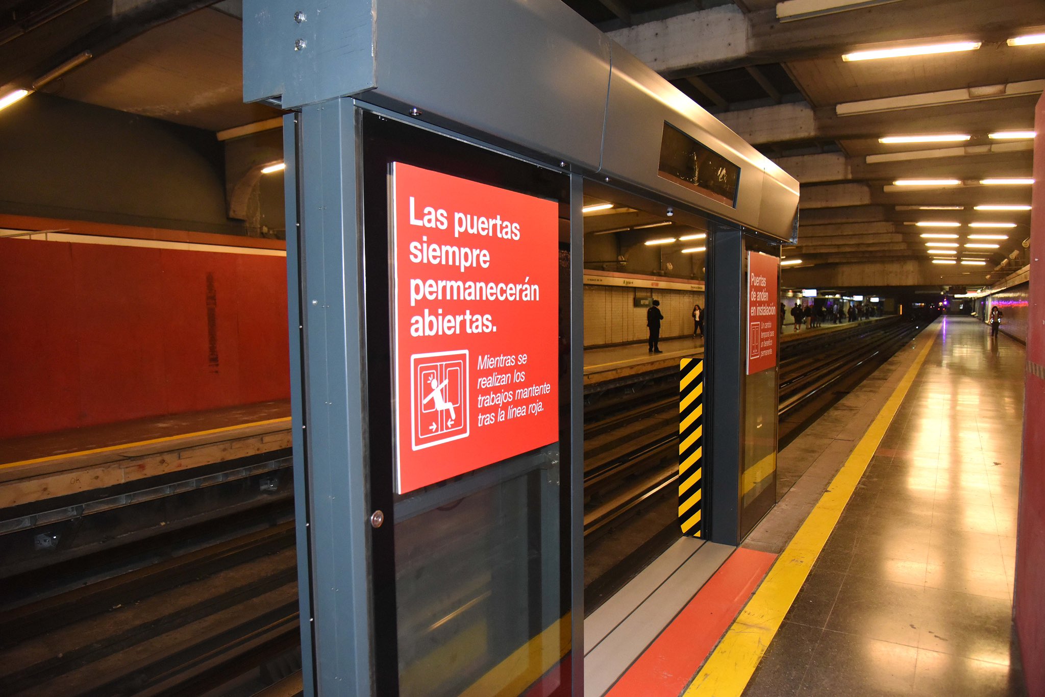 La semana pasada se concretó la construcción del primer tramo de la instalación de puertas en el andén norte de la estación terminal de la Línea 1. Con el fin de mantener San Pablo operativa, el montaje se realizó solo por un sector. Ahora, el lunes los usuarios de la estación ingresarán por primera vez a los trenes de metro atravesando las puertas de andén, para posterior comenzar la instalación de estas en el sector sur.