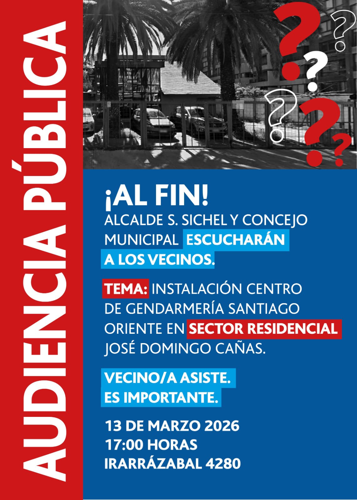 13 de Marzo de 2026Vecinos de Ñuñoa divididos: 250 residentes firmaron en contra de la instalación de Centro de Gendarmería y se reunirán con alcalde Sichel
